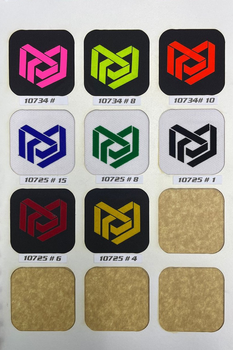 The vinyl printing process only uses one colour and is recomended for Flock , Pu , glitter , Grow in the dark , Reflective and Hologram materials.Vinyl printing works well on on many different type of fabrics.